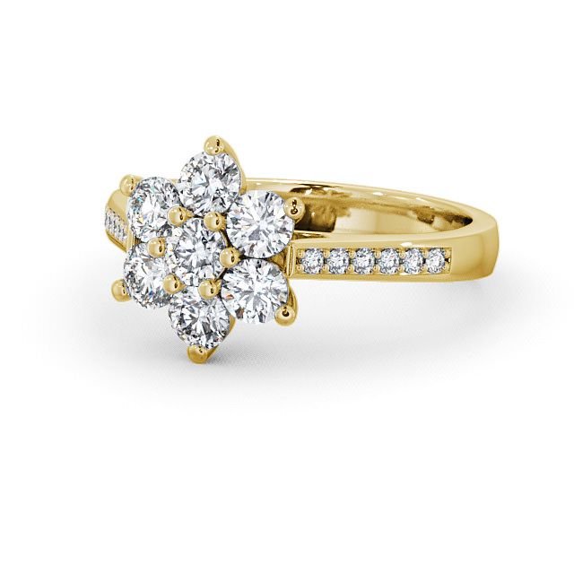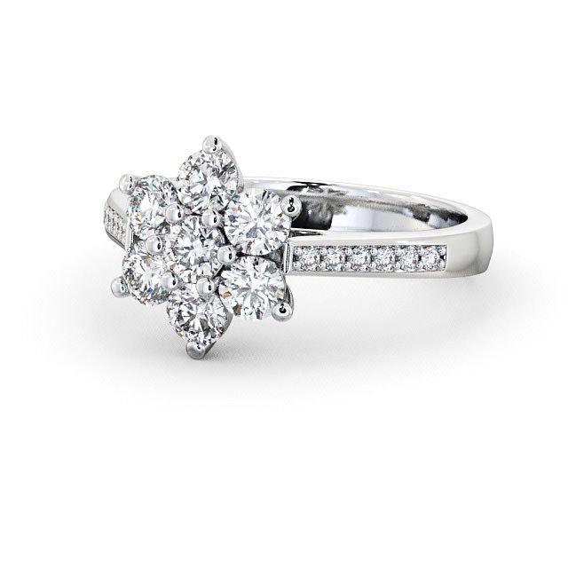 The Valoria Round Cluster Engagement Ring is a refined celebration of layered elegance, designed to captivate through balance and graceful composition. At its center, a luminous round cluster forms a radiant focal point, complemented by delicately arranged side stones that add depth and visual harmony. The thoughtful arrangement creates a sense of richness and dimension, resulting in a silhouette that feels both romantic and timeless.